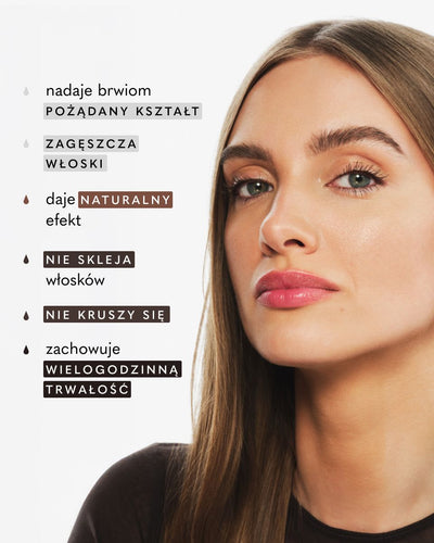 Odkryj długotrwały efekt utrwalenia pożądanego kształtu brwi i podkreśl oprawę oczu. Dzięki naszemu żelowi uzyskasz wygląd naturalnie gęstych, ułożonych włosków!